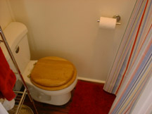 The toilet sits where the original toilet used to be. Back then the waste ran out a pipe onto the side of the tracks! (Don't worry, this one's hooked up to city sewer) There were no showers in old cabooses, but #34 now has a nice hot one.